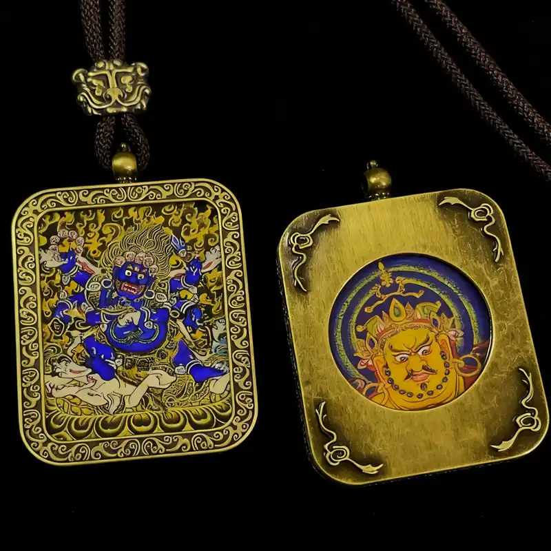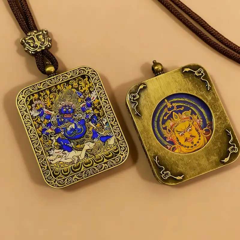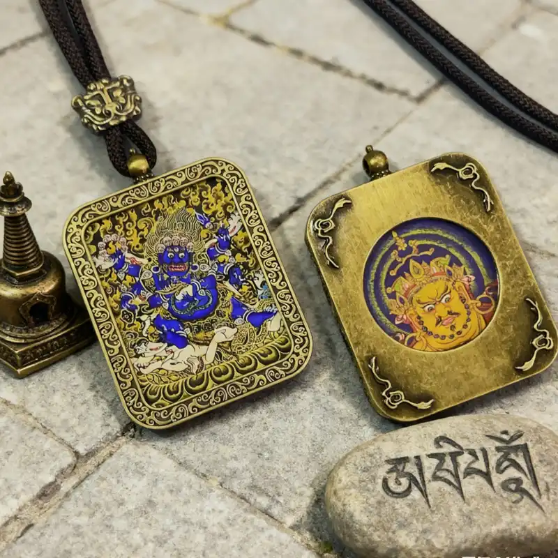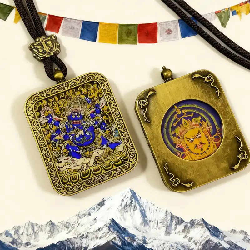 Each pendant is a unique piece of spiritual jewelry crafted by Tibetan artisans using traditional Thangka painting techniques with natural mineral pigments.