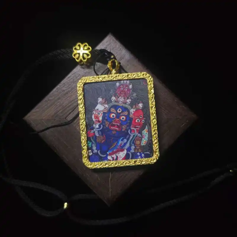 Mahakala Wealth Thangka Pendant – Increase Prosperity, Boost Business, Protect Home