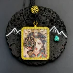 Each pendant is a unique piece of spiritual jewelry crafted by Tibetan artisans using traditional Thangka painting techniques with natural mineral pigments.