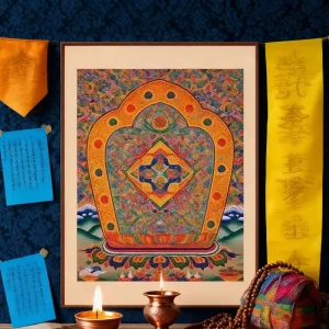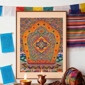 A Thangka is a traditional Tibetan Buddhist painting on cotton or silk, depicting deities, mandalas, or sacred symbols. It’s not just art — it’s a spiritual tool used for meditation and blessings.