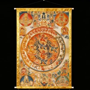 The Vairocana Mandala Thangka is a highly sacred type of Thangka in Tibetan Buddhism’s Vajrayana tradition. Its core element is the concrete representation of the cosmic wisdom and sacred state of Vairocana Buddha through the unique form of the mandala.