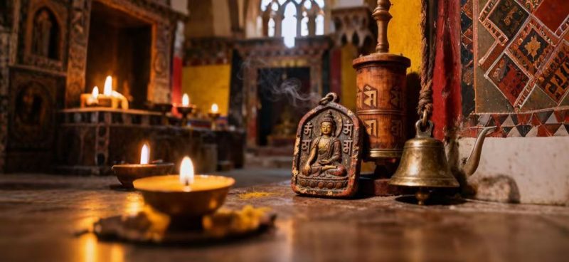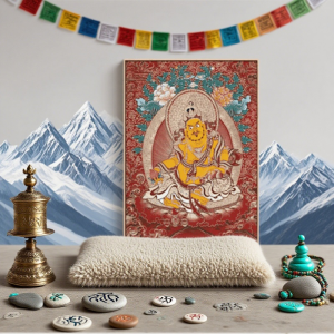 A Thangka is a traditional Tibetan Buddhist painting on cotton or silk, depicting deities, mandalas, or sacred symbols. It’s not just art — it’s a spiritual tool used for meditation and blessings.