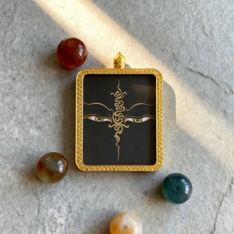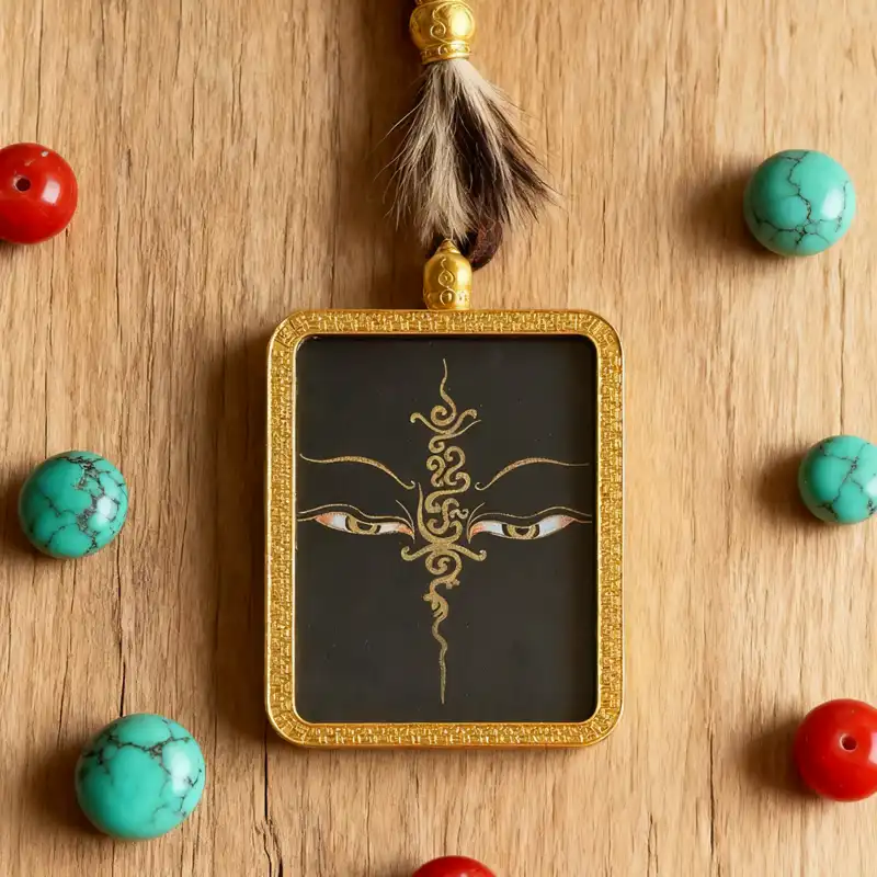 In Thangka art, the Wisdom Eye symbolizes the ever-present potential for enlightenment. Wearing or displaying this sacred emblem serves as a powerful reminder to cultivate mindfulness and discernment in daily life. It invites the energy of clarity and protection, supporting spiritual growth and guiding one toward inner awakening.